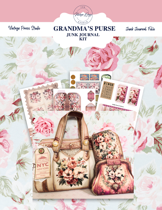 "Grandma's Purse" Junk Journal Fabric & Paper Kit