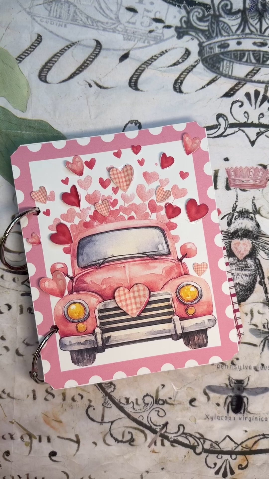 Create the sweetest little Valentine’s Day junk journal with me! 💌 In this step-by-step tutorial and kit, we’ll build a 5" x 4" handmade mini journal packed with 3D hearts, layered folios, ephemera clusters, tags, envelopes, and all the interactive fussy-cut details.
